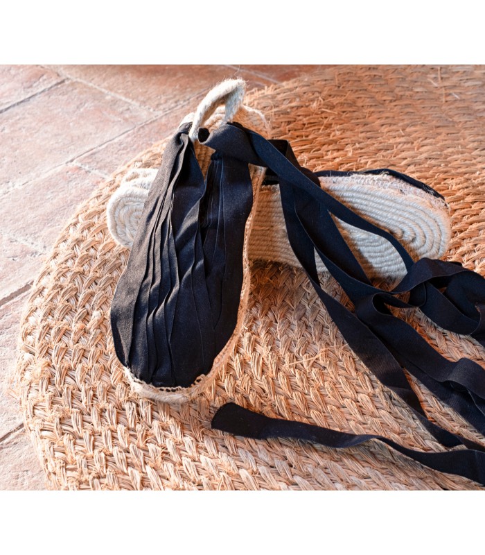 La suela es de yute, es la suela más tradicional y hecha a mano, fresca y cómoda, es necesario evitar la humedad para alargar su vida útil.